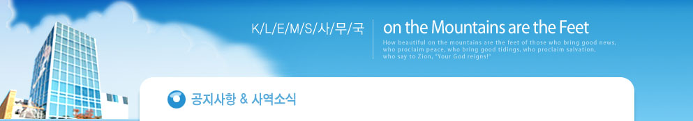 Category   사무국 공지 (2) 사역소식 (0) 전도여행소식 (0)